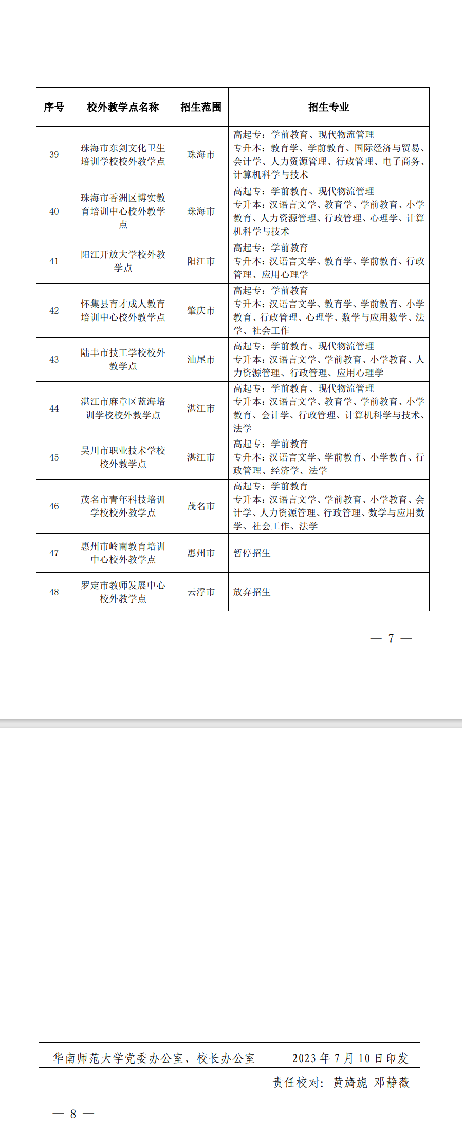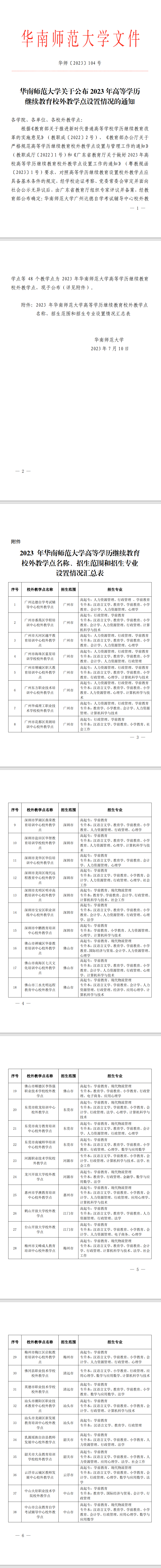 | 华南师范大学关于公布2023年高等学历继续教育校外教学点设置情况的通知 更新时间:2023/7/12 17:48:00 |