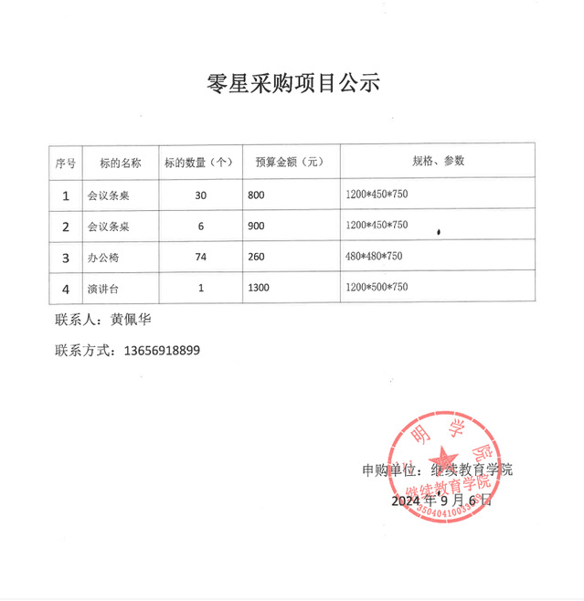 | 零星采购项目公示 课桌椅采购 更新时间:2024/10/30 9:24:00 |